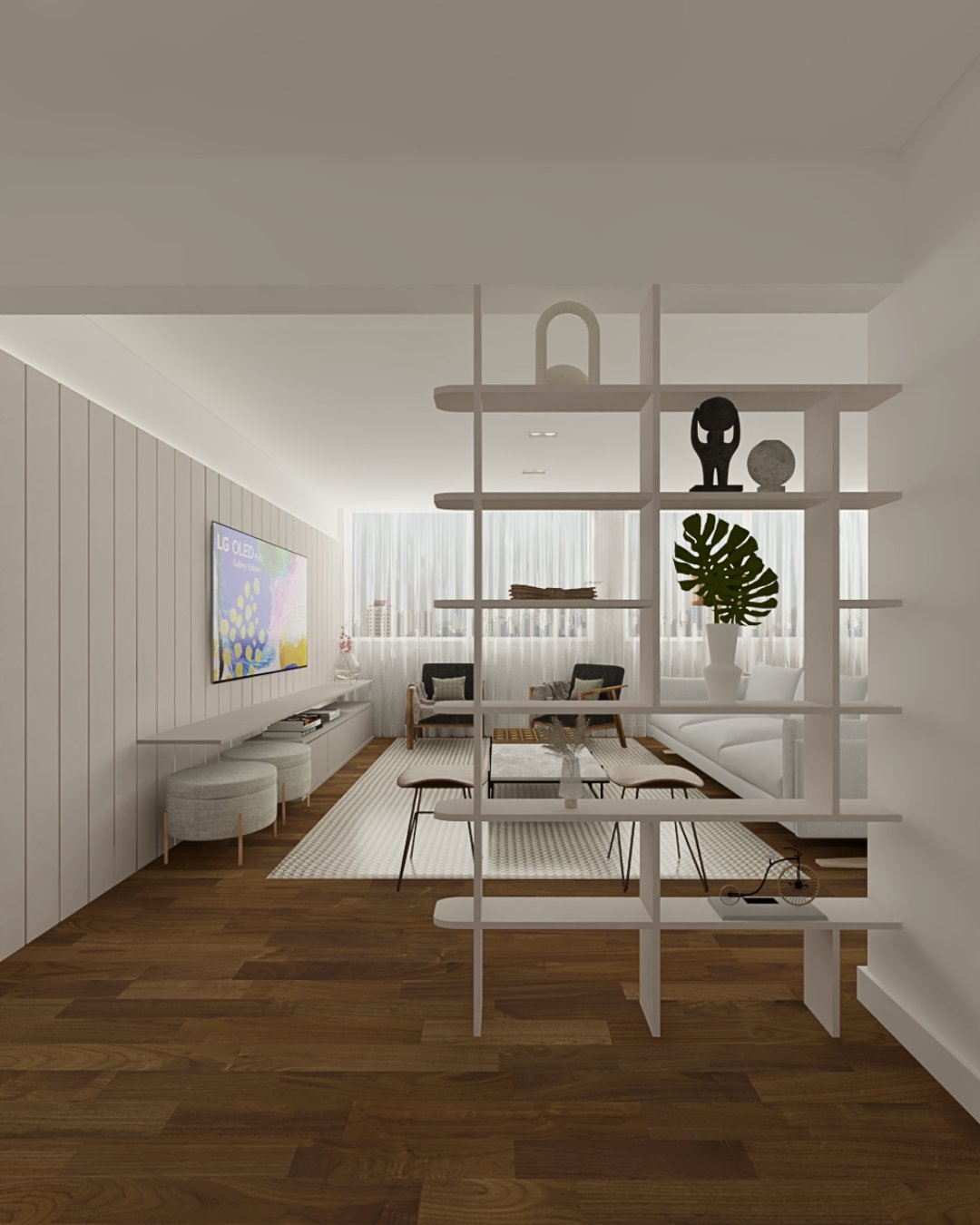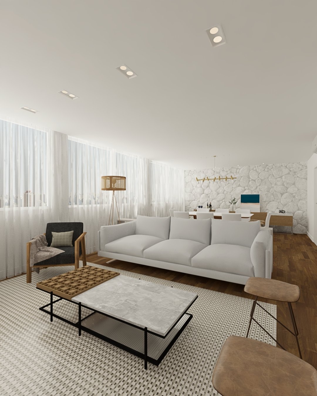 Projeto de um apartamento de 200m² no Morumbi, pensado para um casal com um filho.